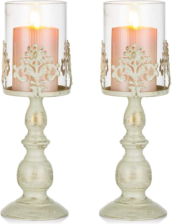 NUPTIO 2 Stücke Vintag Design Geschnitzter Kerzenständer, Paket Aktualisiert Hochzeit Party Weihnach