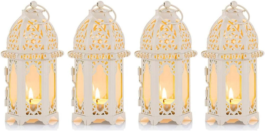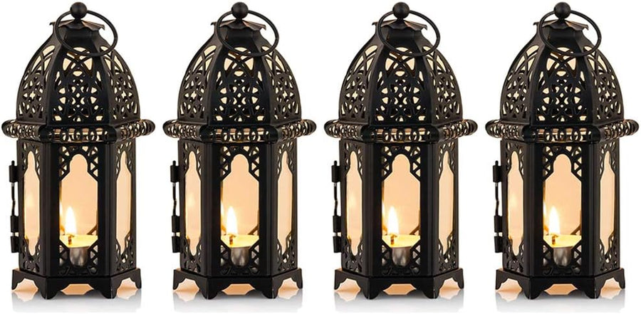 NUPTIO 4 Stück Marokkanischen Stil Kerze Laterne, Kleine Teelichthalter mit Transparente Glasscheibe
