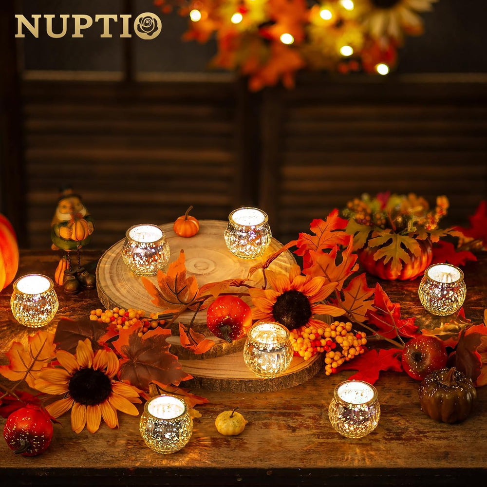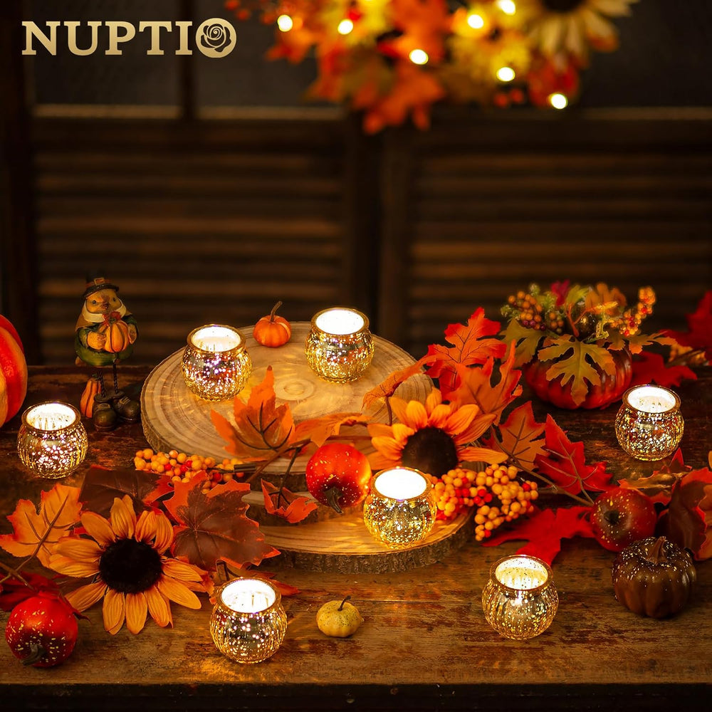 NUPTIO Glas Teelichtgläser Gold Teelichthalter: 12 Stück Teelichter Halter Gerippt Teelichter Kürbis