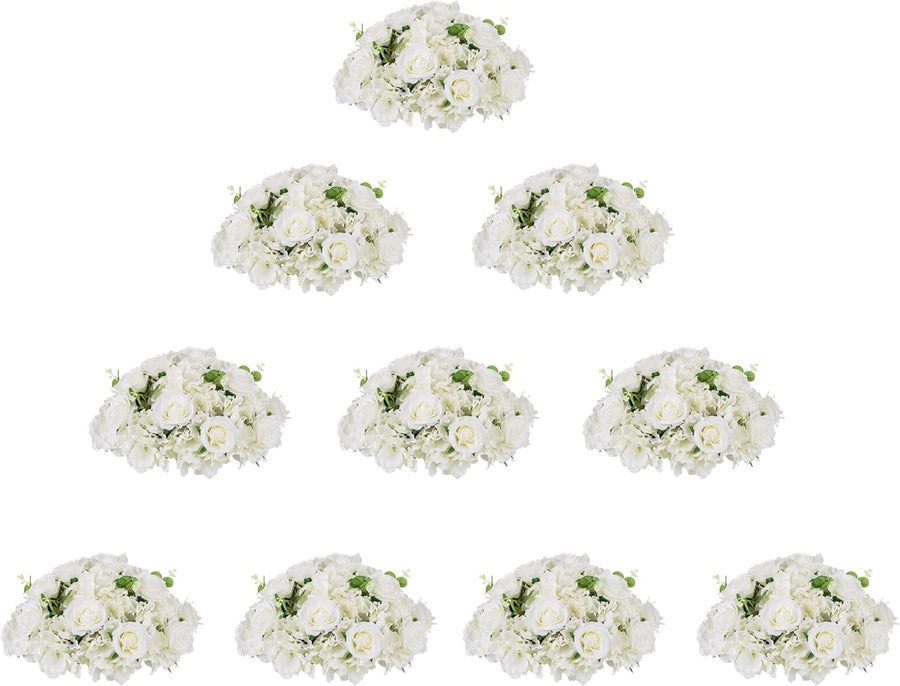 NUPTIO Blumenkugel Arrangement Strauss 10 Stück 40cm Durchmesser Weiss Gefälschte Blumen Rosen Kugel
