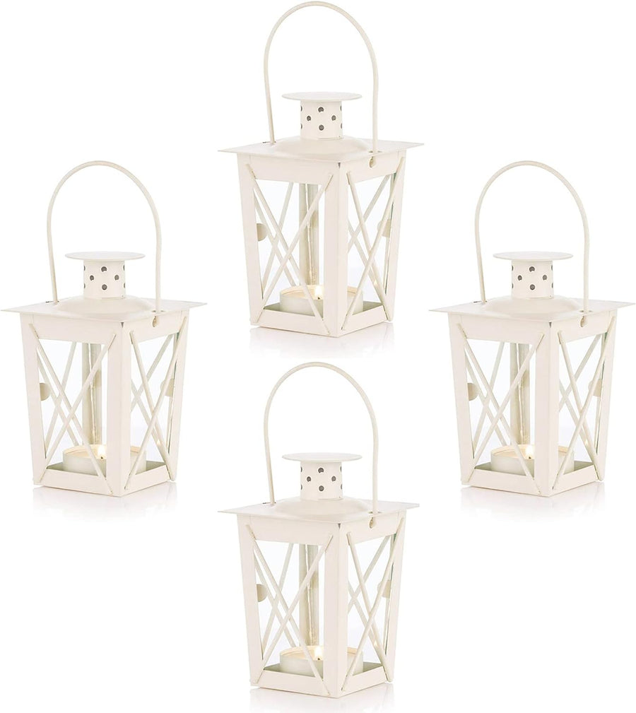 Nuptio 4 Stück Lanterne en Verre à Terre Suspendue, Lanterne en Verre Portable, Petite Lanterne Rétr