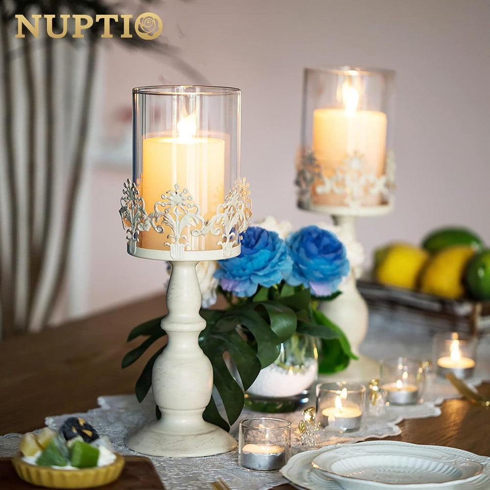 NUPTIO Dekorative Laterne Grosse Hängende Hurrikan Säule Kerzenhalter für Tischdisplay, Vintage Dist