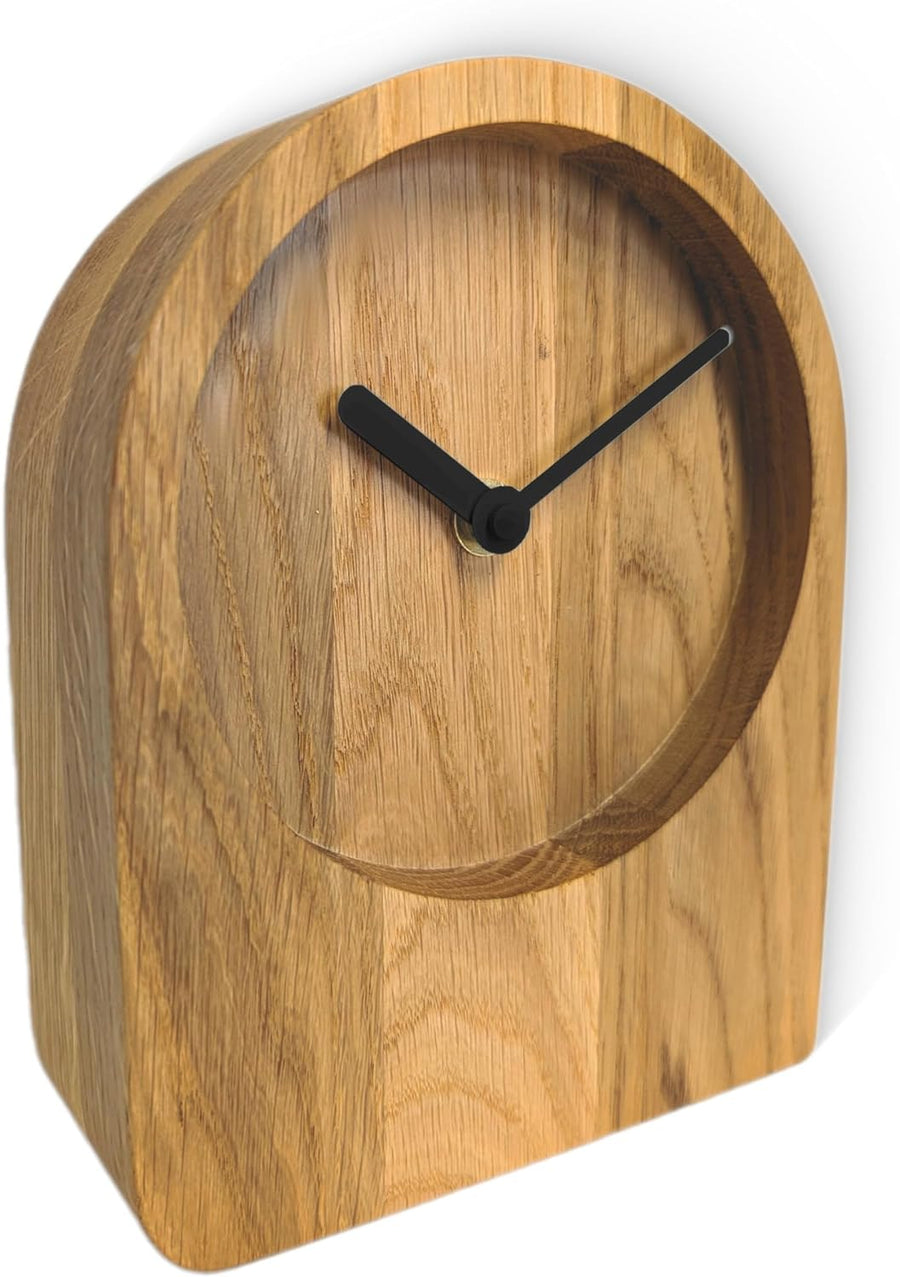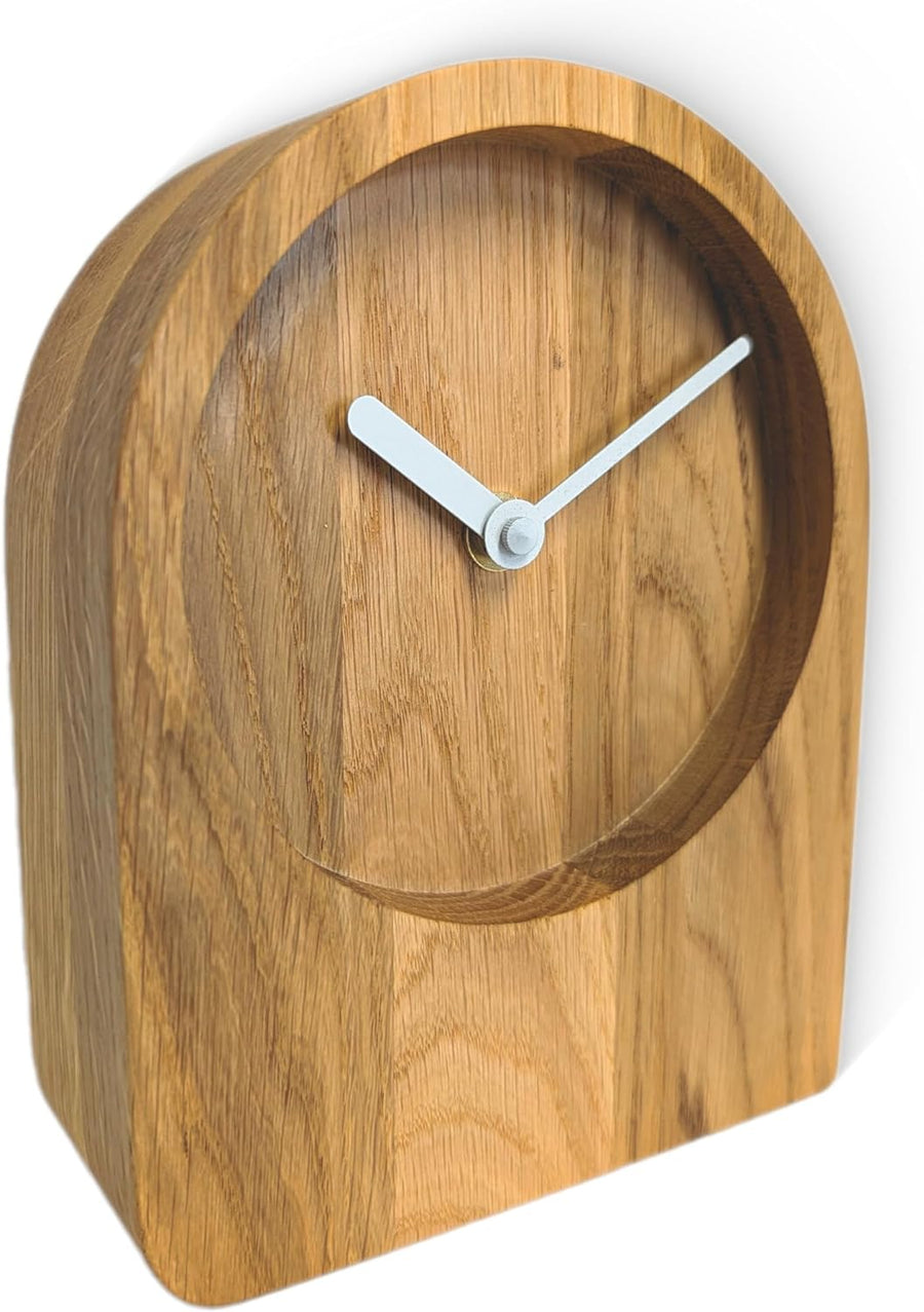 Natuhr Tischuhr Eiche Holzuhr - Dome - puristisch modern Massivholz (Eiche geölt, Weisse Zeiger - Fu