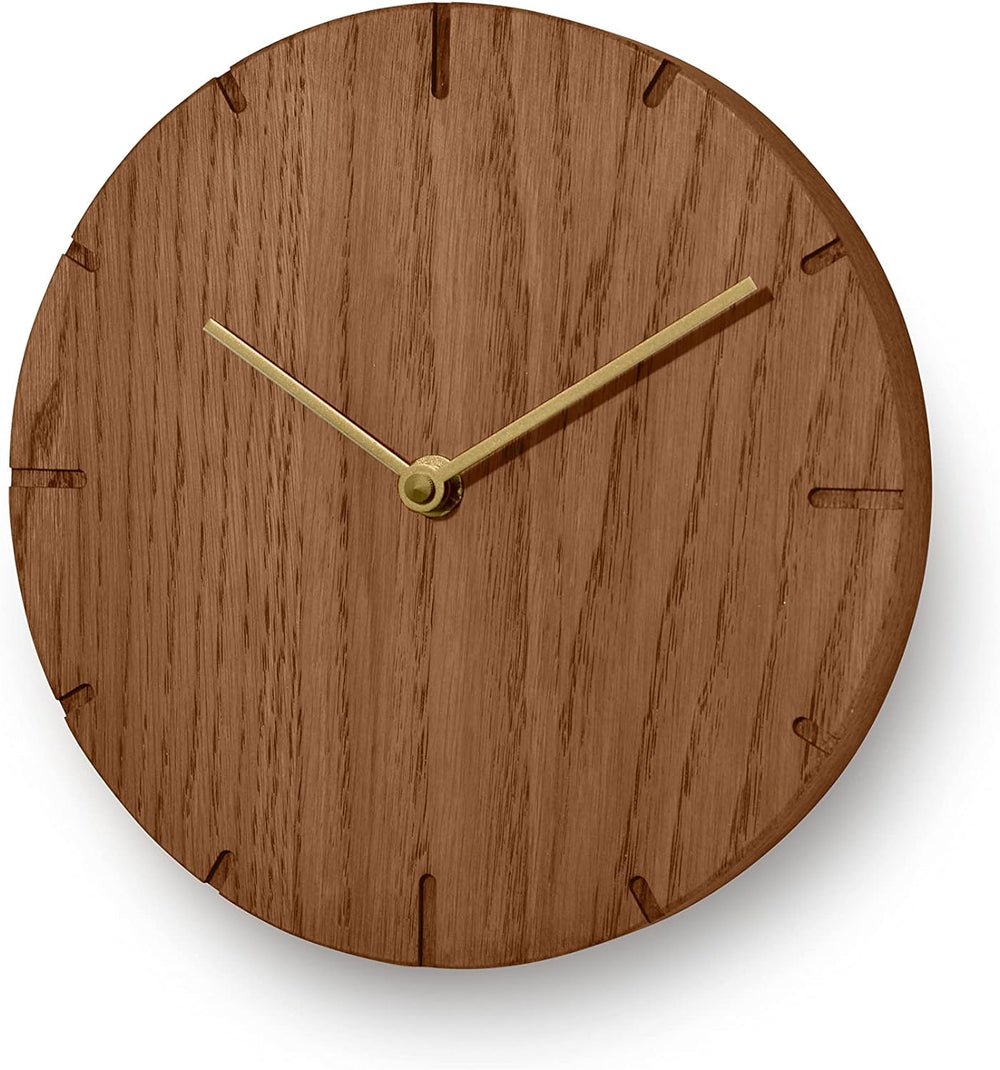 Natuhr Wanduhr Tischuhr Eiche Holz - Boom - geräuscharm Massivholz Design ø17 cm (Eiche dunkel geölt