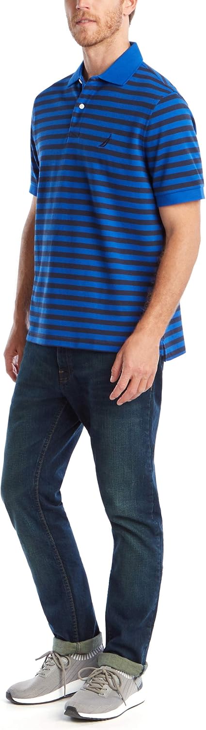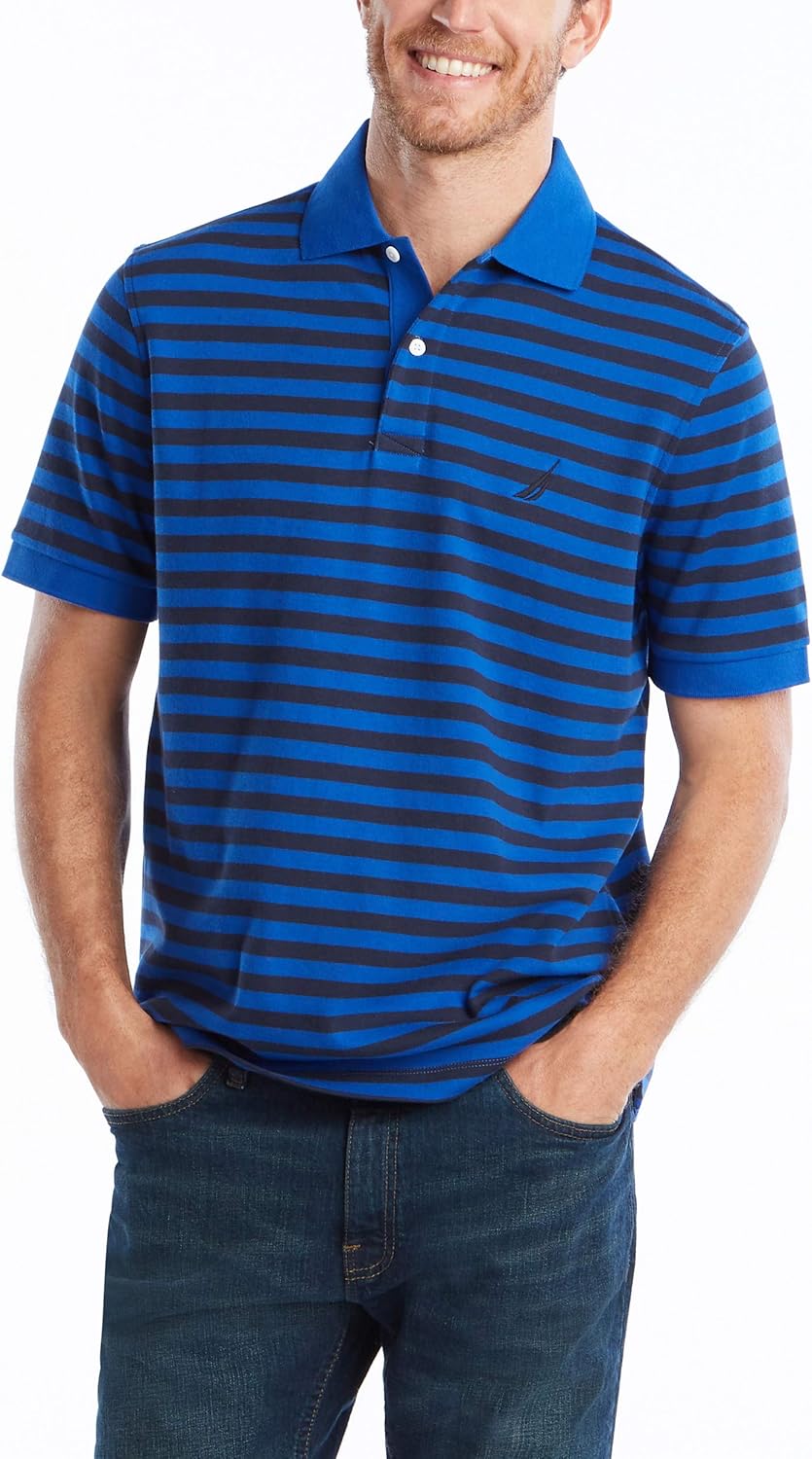 Nautica Herren Klassisches Poloshirt, Kurzärmelig, 100% Baumwolle, Gestreift, Weich Polohemd 1X Hell
