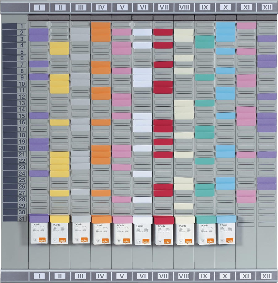 Nobo T-Karten Wochenplanungs-Set, Wandmontage, Haftnotizen Set mit 8 Spalten & 54 Slots, Grösse 3, e