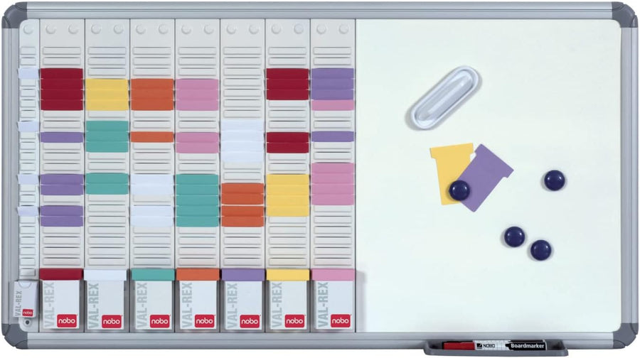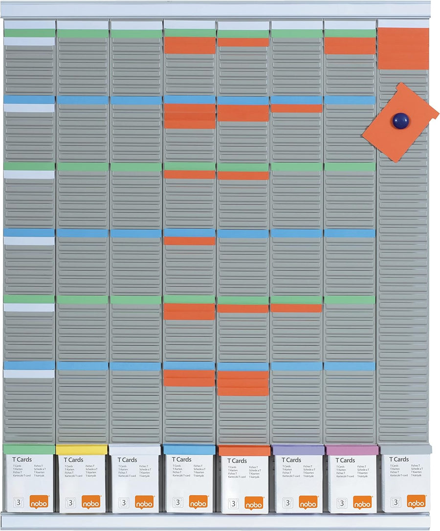 Nobo T-Karten Planungsset mit magnetischem Whiteboard, Wandmontage, Stahloberfläche, 8 Spalten & 24