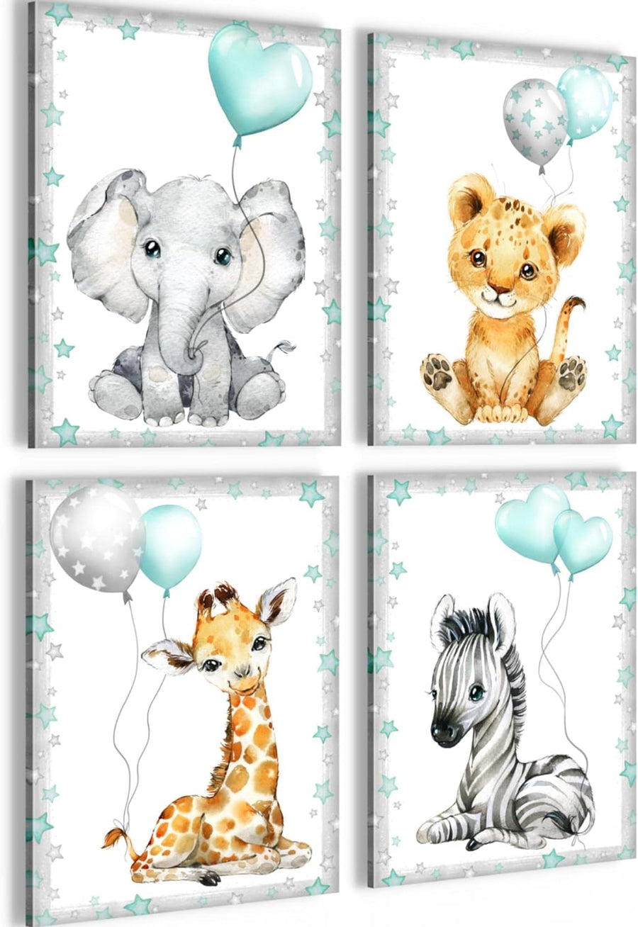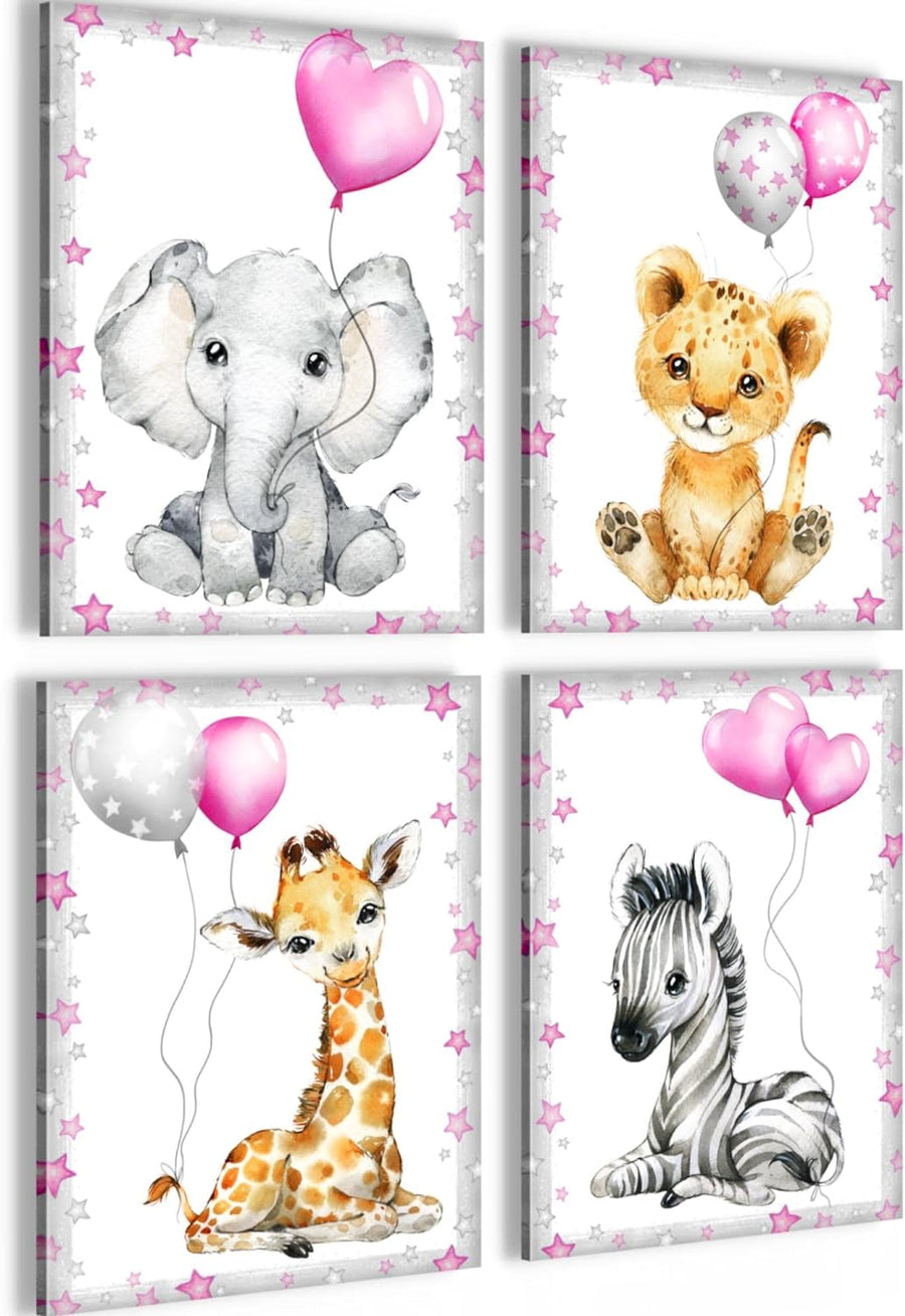 Novart Set Wandbilder - KEIN EXTRA RAMEN BENÖTIGT - Kinderzimmer Mädchen - Bilder Modern Tiere Balle