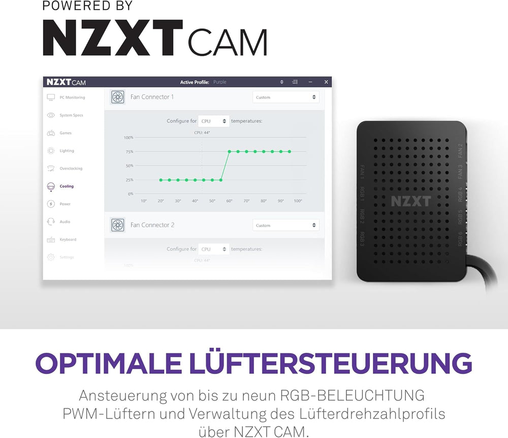 NZXT RGB & Fan Controller - AC-CRFR0-B1-6 RGB-Beleuchtungskanäle - 3 Lüfterkanäle - Anpassung der RG