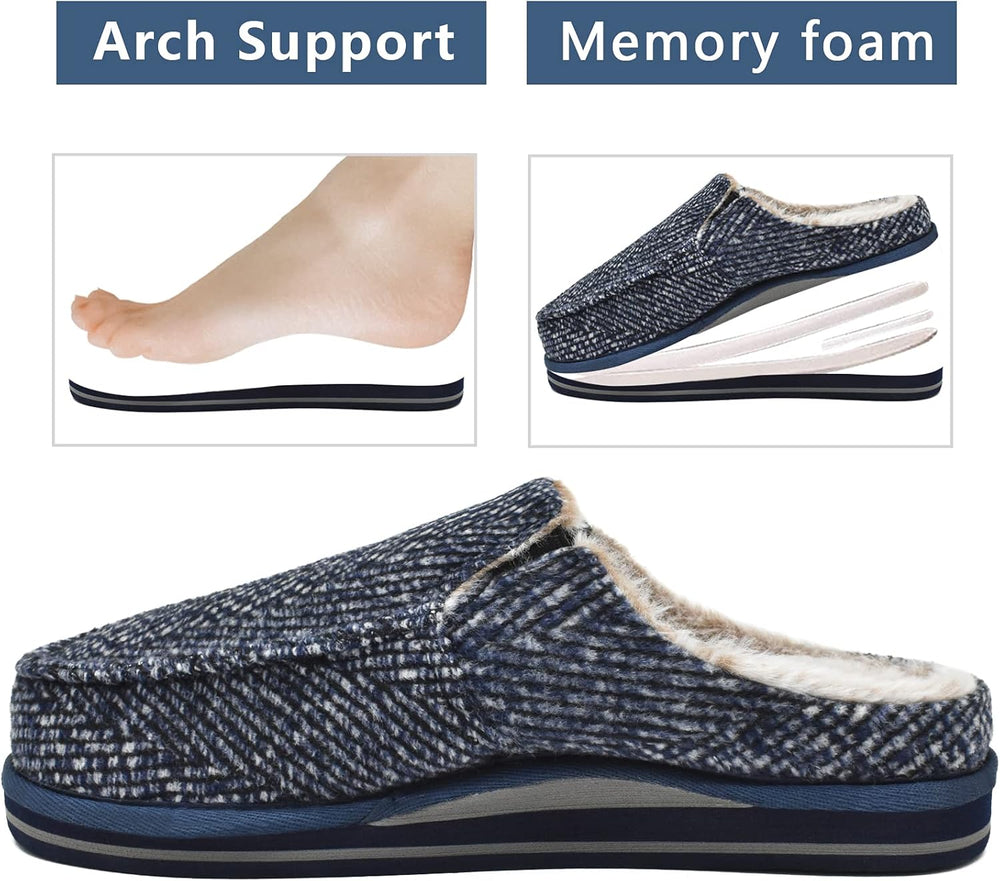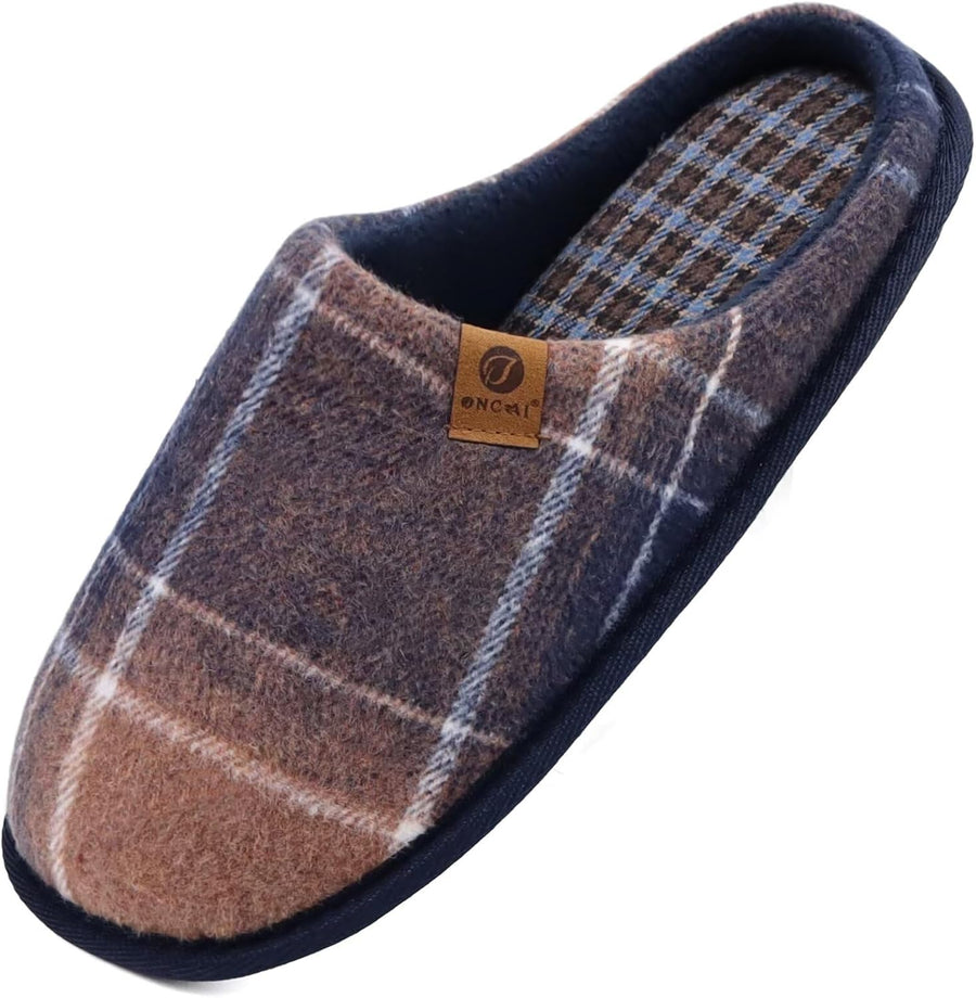 ONCAI Hausschuhe Herren Rückstellschaum Warme streifen Pantoffeln Flauschig Plüsch Gefüttert Mit Rut