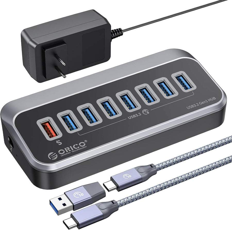 ORICO USB 3.0 Hub 10 Ports mit Netzschaltern und Netzteil 45W (12V4A), 5 Gbps Highspeed Datenhub für