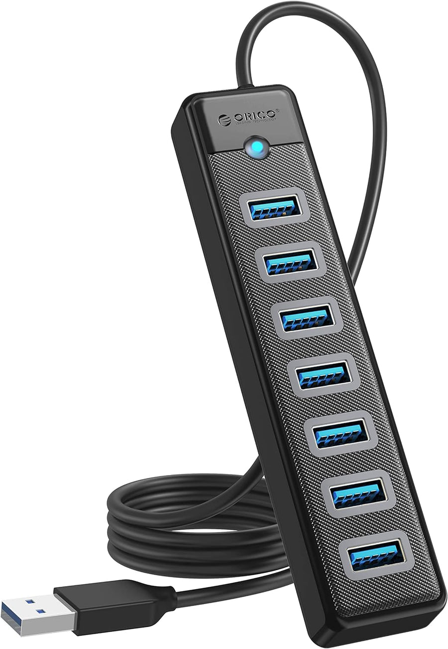 ORICO USB Hub mit 100CM Long Kabel, 7 Port USB 3.0 Hub mit 5V/3A Netzteil Port, 5Gbps Ultra-Slim USB