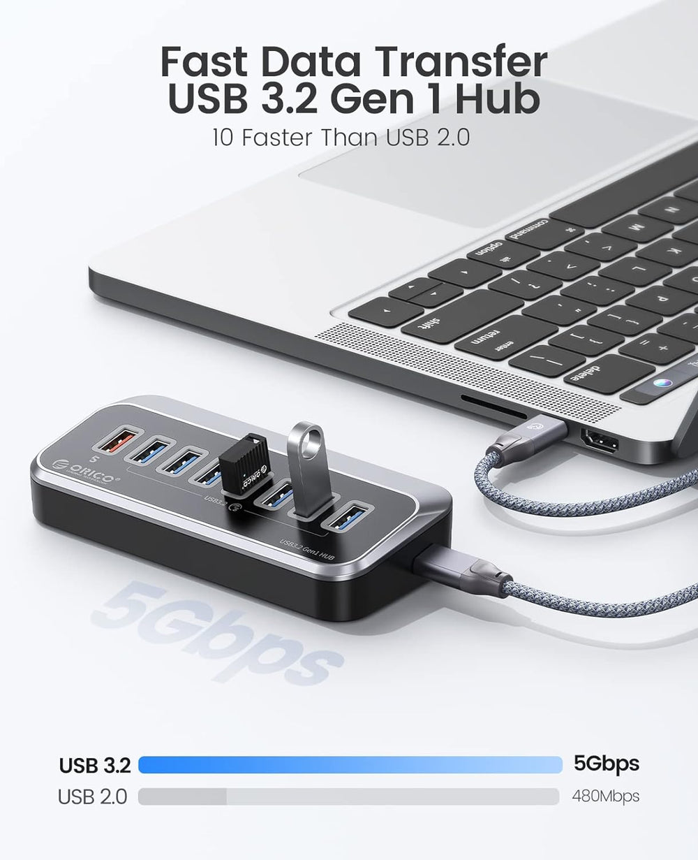 ORICO USB C Hub, 7-Port Aluminium USB Splitter, 5Gbps USB Hub mit 0.5m USB C Kabel und USB A Adapter