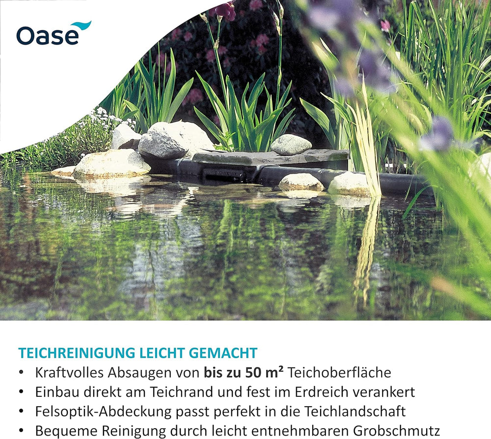 OASE 57137 Einbau-Oberflächenabsauger BioSys Skimmer plus, geeignet für max. 50m², Einbau am Teichra
