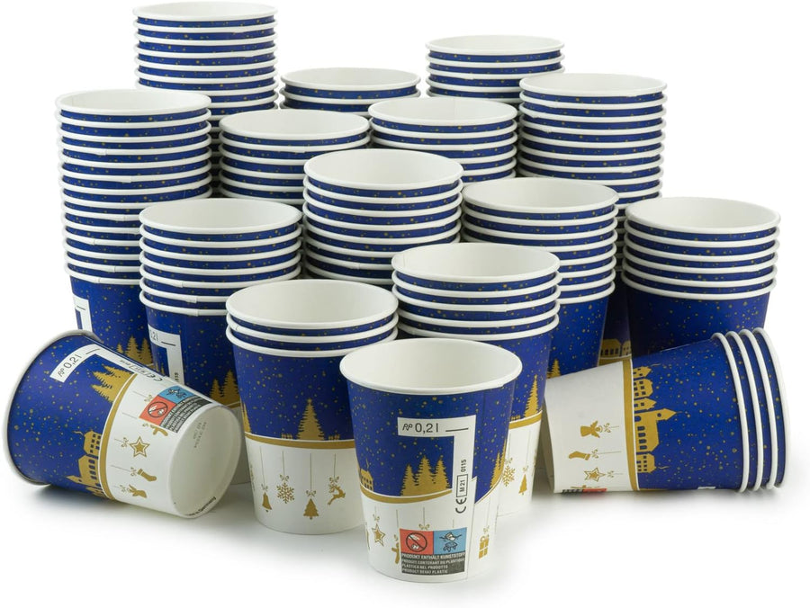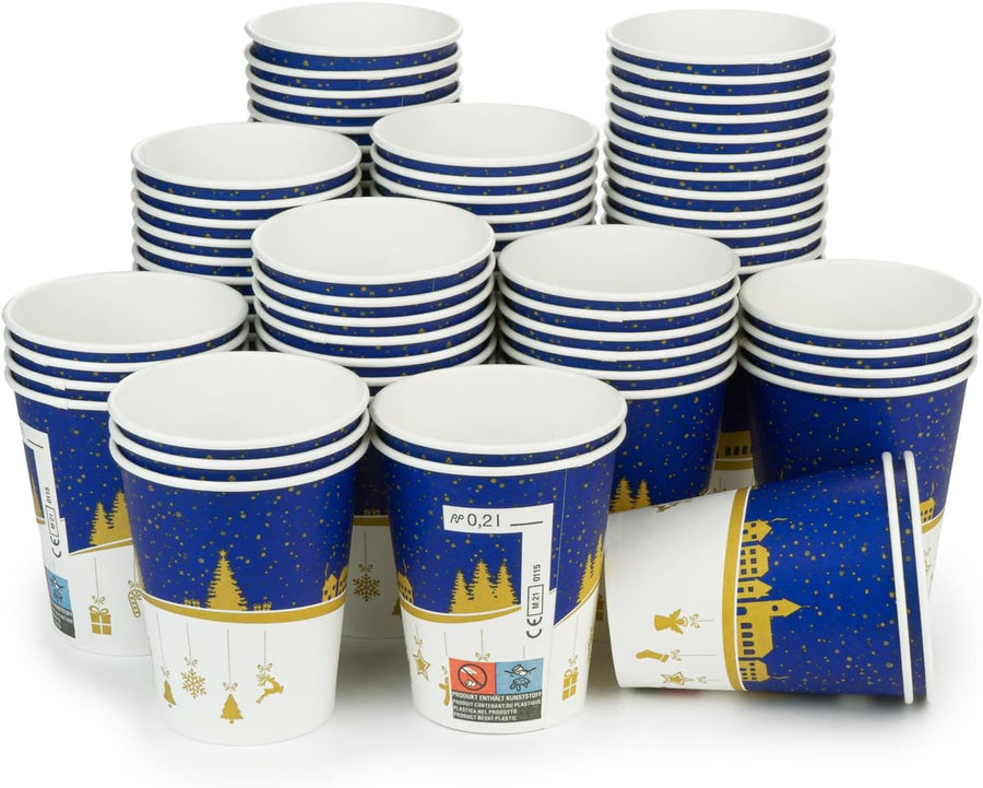 Octopus 75x Glühweinbecher, Pappbecher (nachhaltig produziert) Wintermotiv mit 200 ml Füllvolumen 75