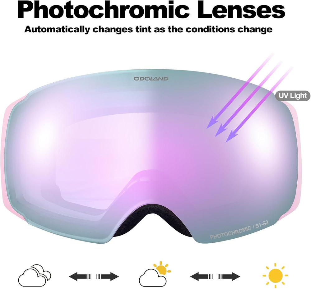 Odoland Skibrille Ski Goggles für Damen und Herren Jungen Rahmenlose Snowboardbrille mit Magnetische