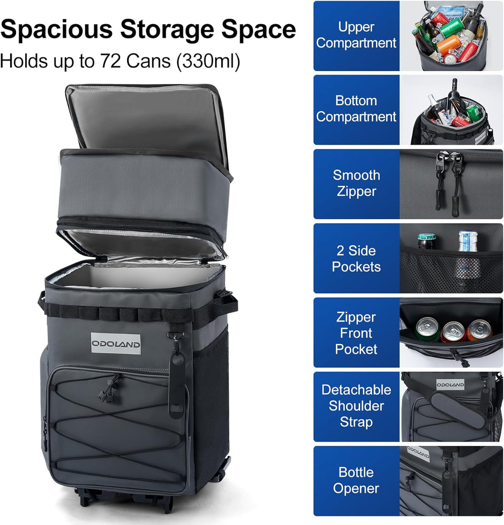 Odoland Kühltasche gross 48/72 can Rollkühler Picknicktasche mit Rädern und Griff Auslaufsicher & Wa