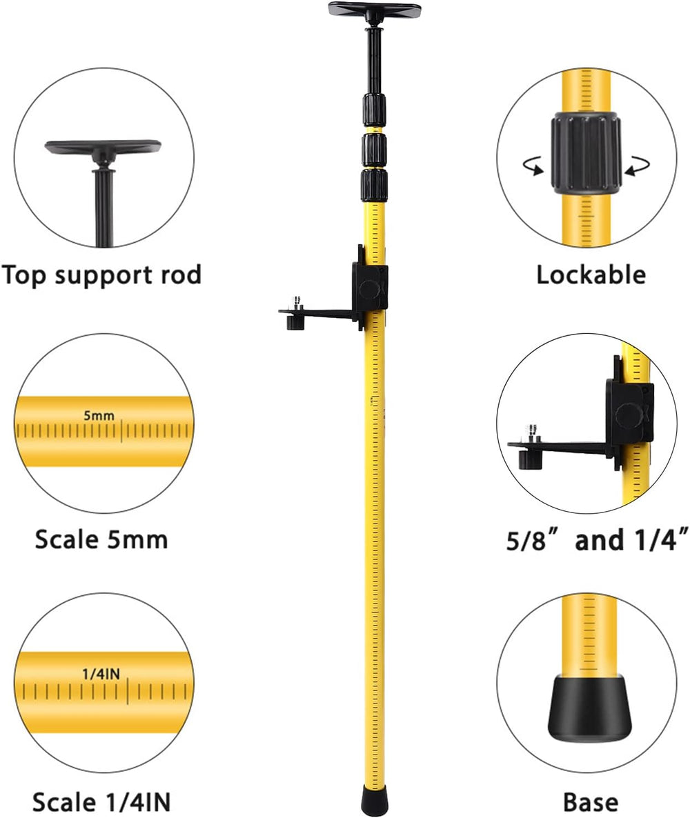 Oumefar 2,8-Meter-Laser-Nivellierungs-Teleskopstange, Verstellbare Halterung für Hochleistungs-, Rot