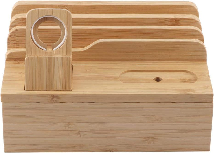 Oumefar Bambus-Ladestations-Rack für mehrere Geräte, Speicherladedockstation und Organizer für Mobil