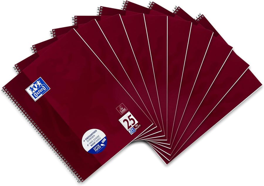 Oxford Collegeblock A4 liniert, weisser Rand rechts, 80 Blatt, bordeaux, 10 Stück 10 Stück Lineatur