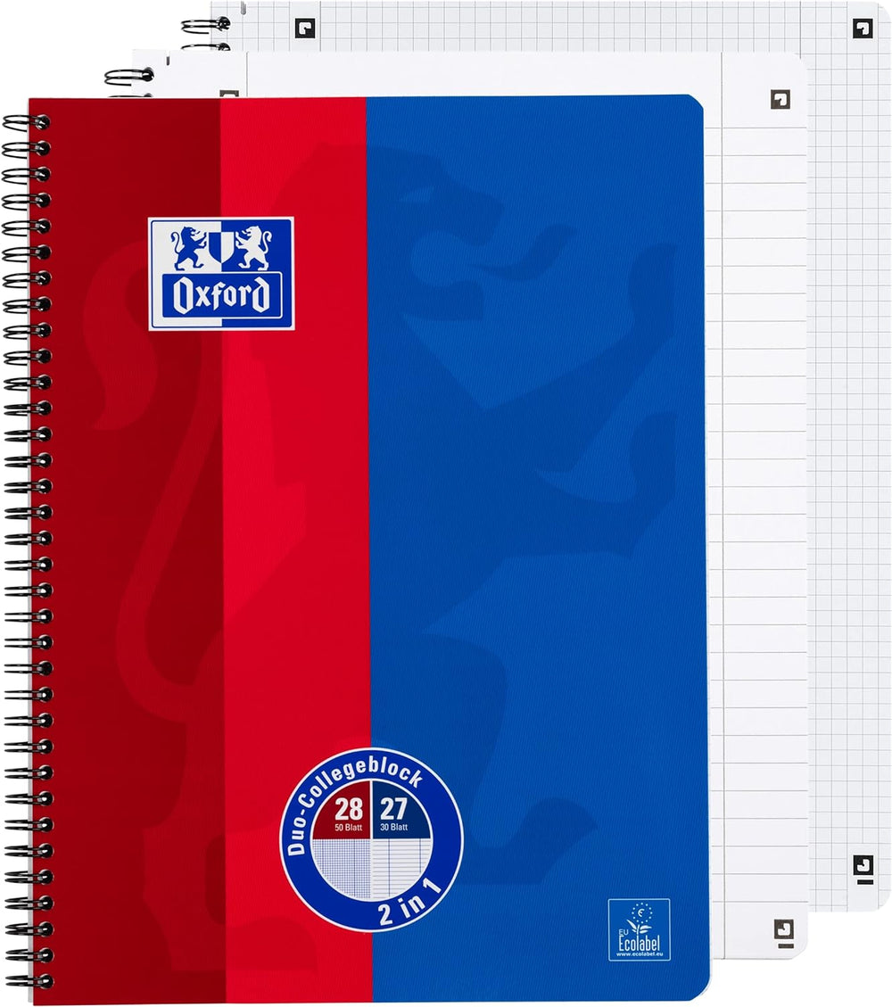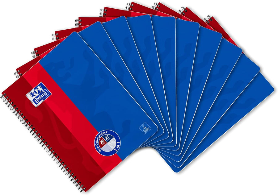 Oxford Collegeblock Duo A4 kariert und liniert, 80 Blatt, rot/blau, 10 Stück Single, Single