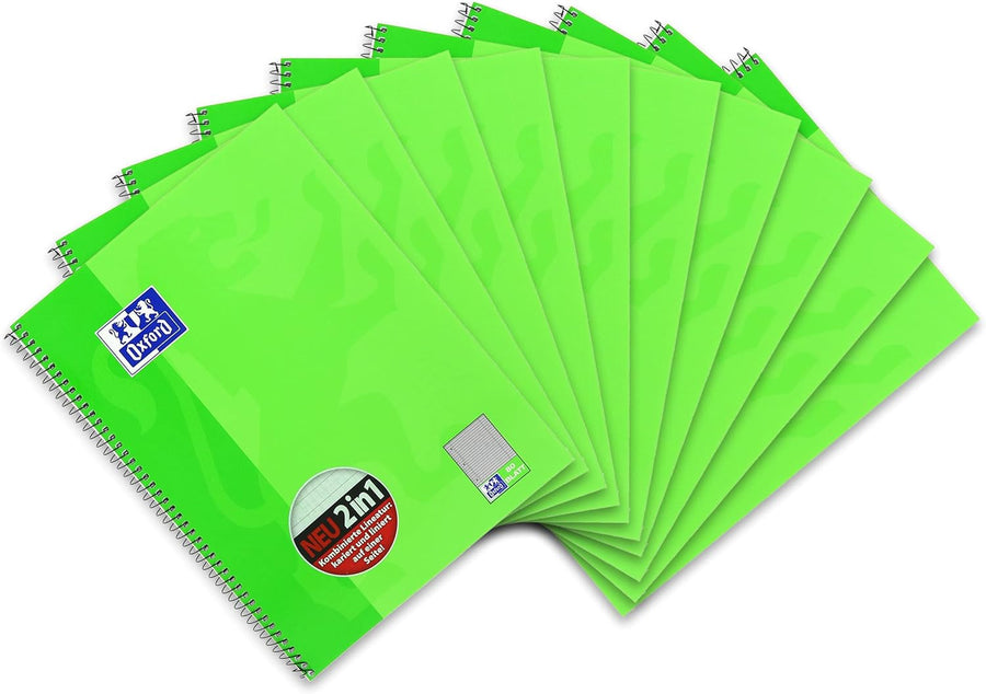 Oxford Collegeblock A4 kar-lie, kariert/liniert, 80 Blatt, hellgrün, 10 Stück Single, Single