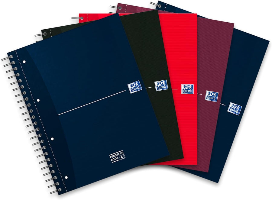 Oxford broschiertes Buch A4, kariert, 192 Seiten, 4 Farben, 5 Stück A4, liniert Broschiertes Buch, A