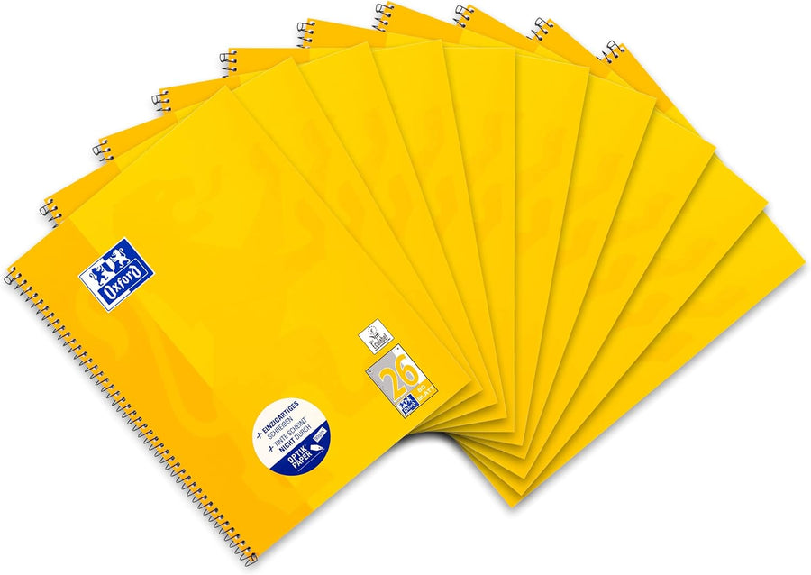 Oxford Collegeblock A4 kariert, weisser Rand rechts, 80 Blatt, gelb, 10 Stück Single, Single