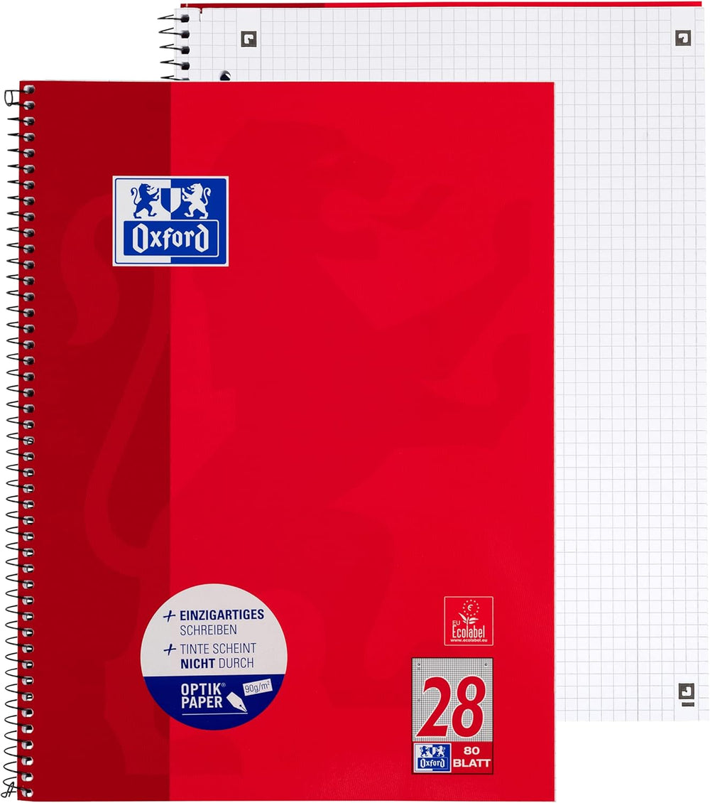 Oxford Collegeblock A4 kariert, mit Doppelrand, 80 Blatt, rot, 10 Stück, 10 Stück