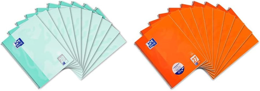 Oxford Collegeblock A4 kariert, 80 Blatt, gelocht, mint, 10 Stück & Collegeblock A4 liniert, mit Dop