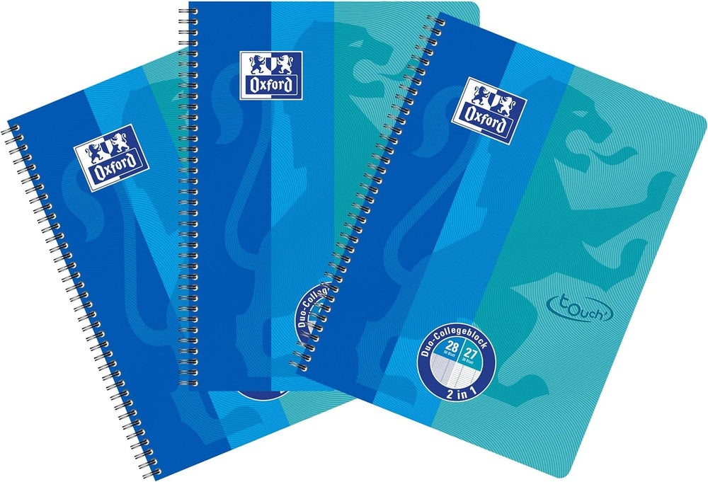 Oxford DUO Collegeblock A4 kariert und liniert kombiniert in einem Block, blau, 3er Pack & Schule DU