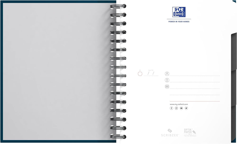 Oxford Collegeblock A5, kariert, 200 Seiten, European Book, 3 Register, 4 Farben, 5 Stück, A5, karie