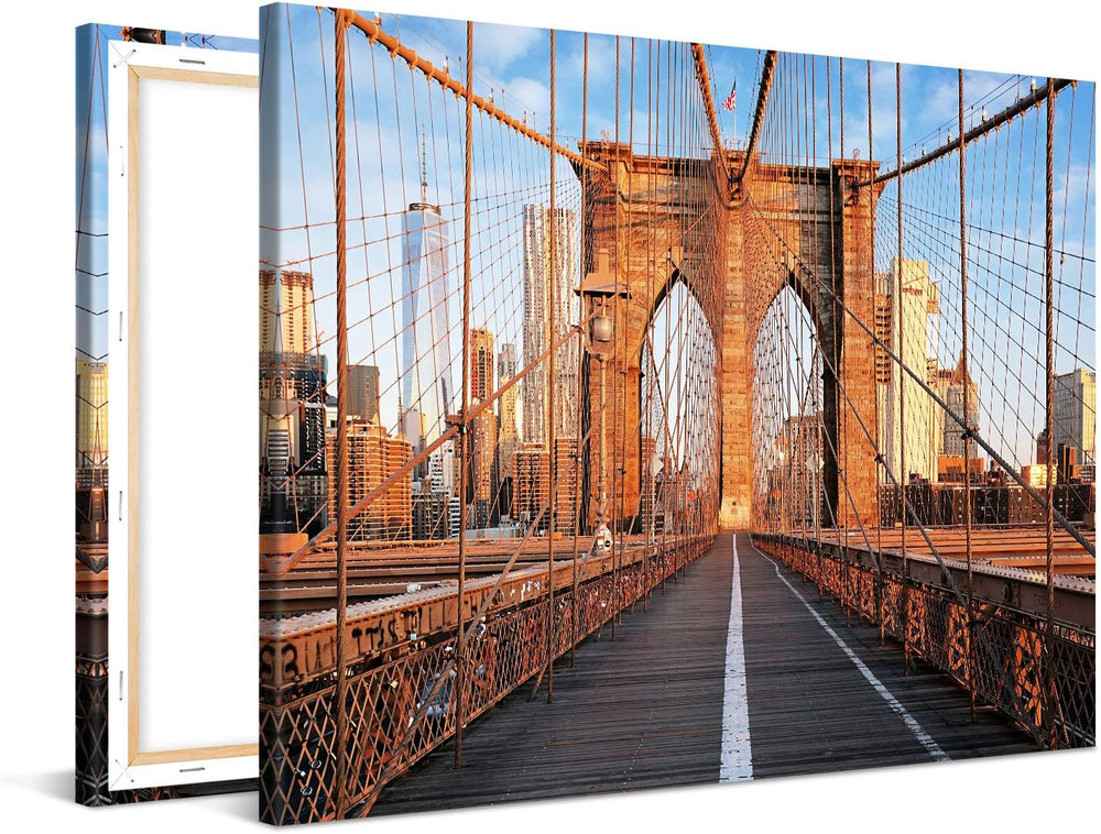 PICANOVA – Bild auf Leinwand New York Brooklyn Bridge 100x75cm – Leinwandbild – Premium Leinwanddruc