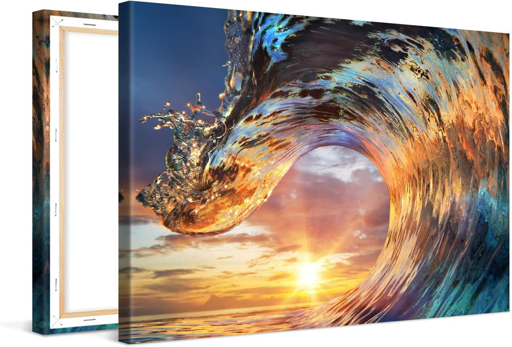 PICANOVA – Bild auf Leinwand Wellen-Sonnenuntergang 80x60cm – Leinwandbild – Premium Leinwanddruck –