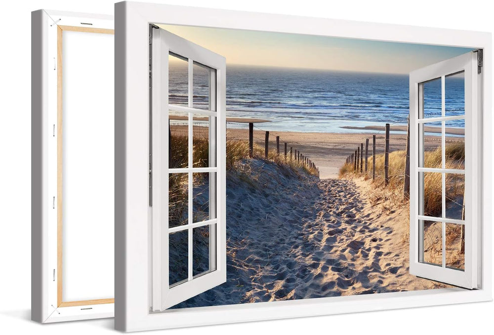 PICANOVA – Bild auf Leinwand Weg zum Meer Fenster 60x40cm – Leinwandbild – Premium Leinwanddruck – W
