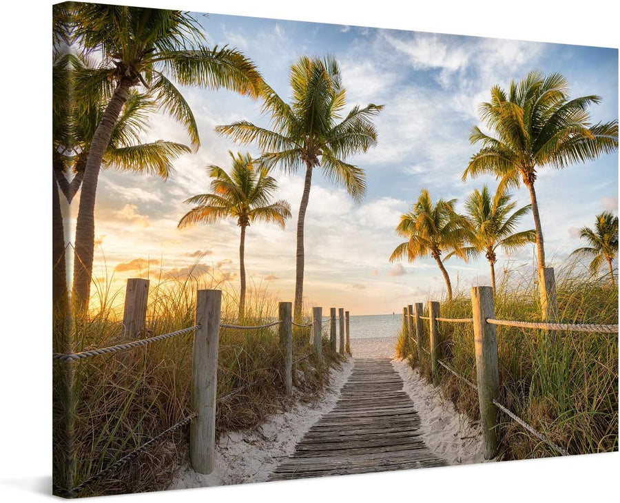 PICANOVA – Bild auf Leinwand Palmenweg zum Meer 60x40cm – Leinwandbild – Premium Leinwanddruck – Wan