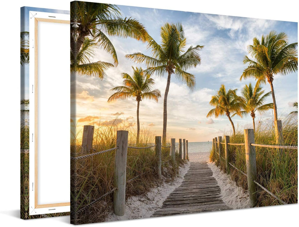 PICANOVA – Bild auf Leinwand Palmenweg zum Meer 80x60cm – Leinwandbild – Premium Leinwanddruck – Wan