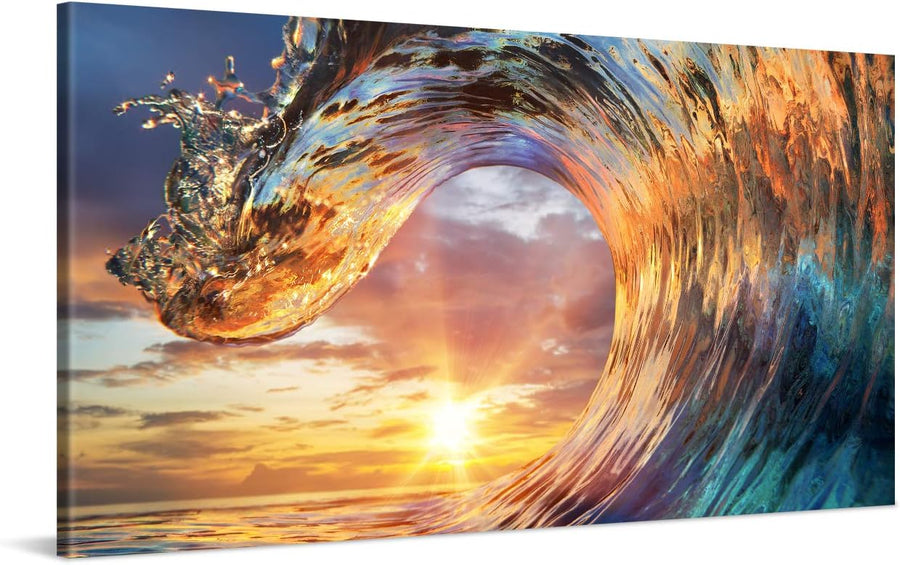 PICANOVA – Bild auf Leinwand Wellen-Sonnenuntergang 100x50cm – Leinwandbild – Premium Leinwanddruck