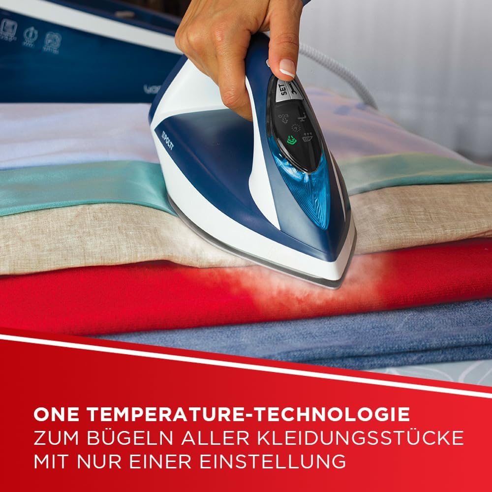 Polti Vaporella Quick&Comfort QC120 Bügeleisen mit Bügelplatte aus Edelstahl, Griff mit Soft-Touch-K
