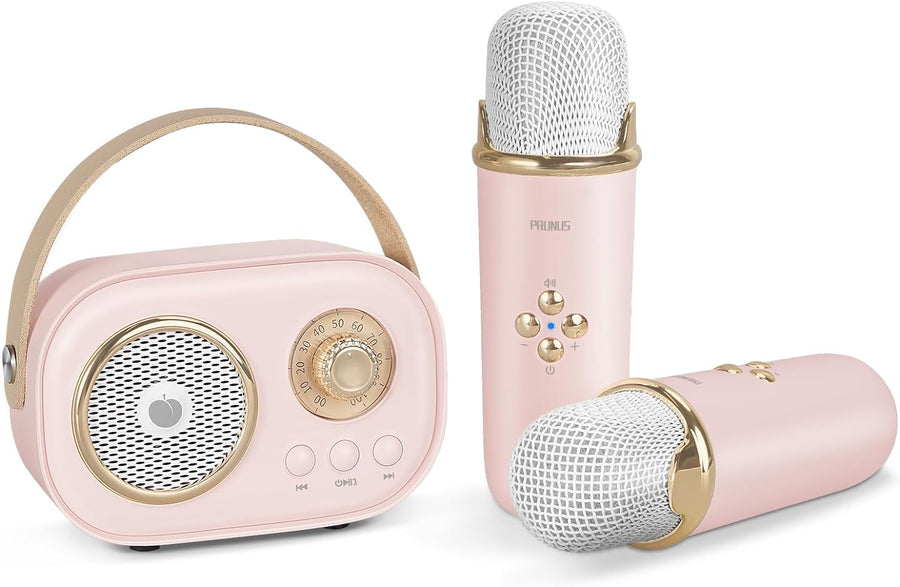 PRUNUS Karaoke Maschine Kinder mit 2 Mikrofonen, Mini Karaoke Set mit Stereosound und Heavy Bass für