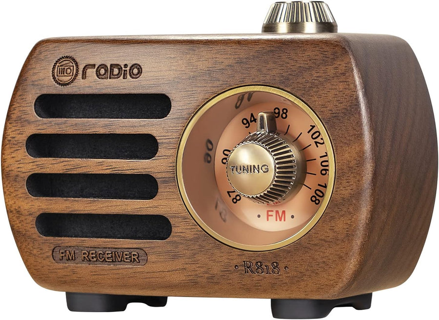 PRUNUS R-818 Holz Mini Radio Klein, Retro Radio mit Bluetooth Lautsprecher, tragbares FM UKW Radio,