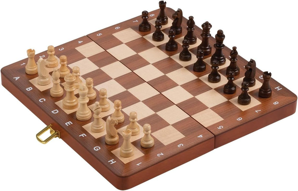 Philos 2802 - Schach-Dame-Set, beiseitig bedrucktes Brett, schwarz gebeizt