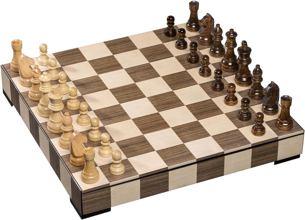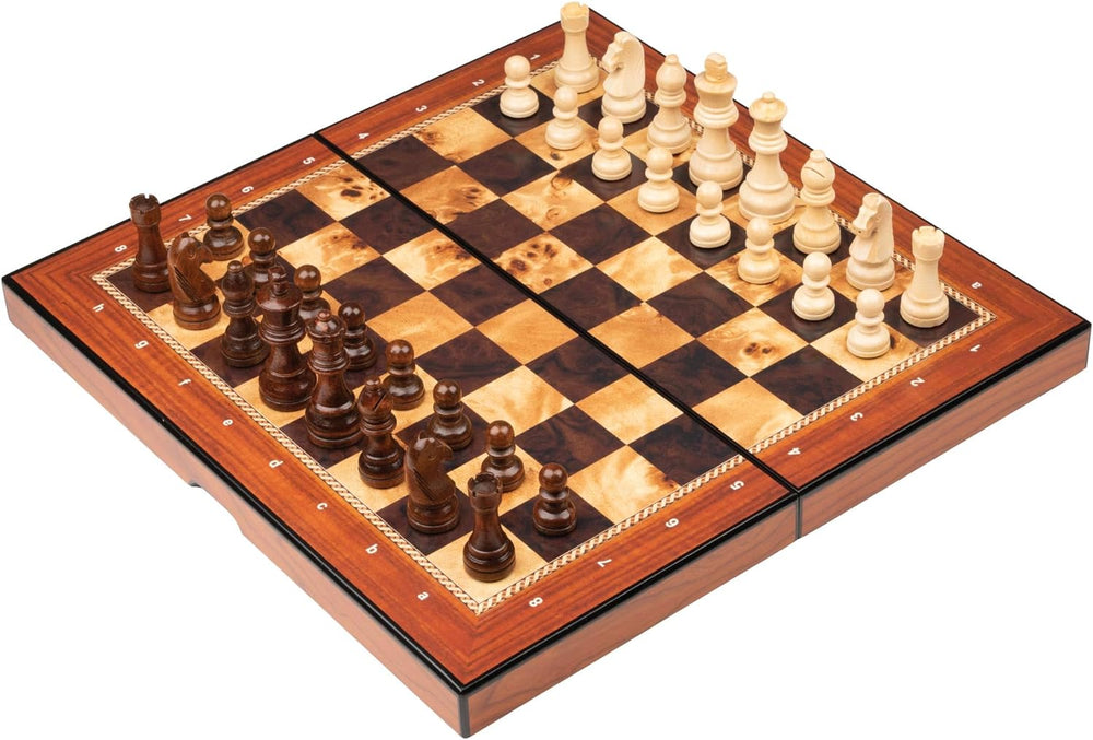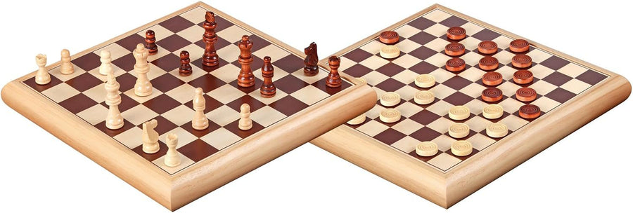 Philos 2803 - Schach-Dame-Set, beidseitig bedrucktes Brett mit Holzbox