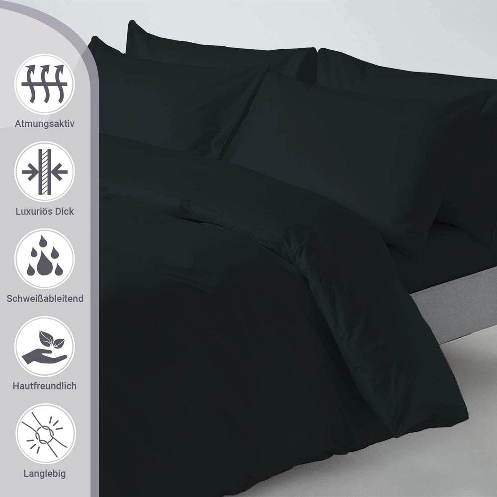 Pizuna 800 Fadenzahl aus Baumwolle Bettwäsche Schwarz, 100% Langstaple Baumwolle Bettbezug und Kisse