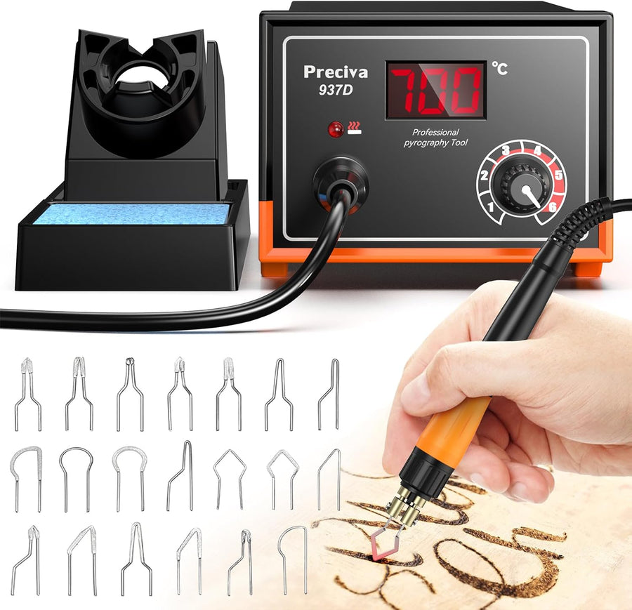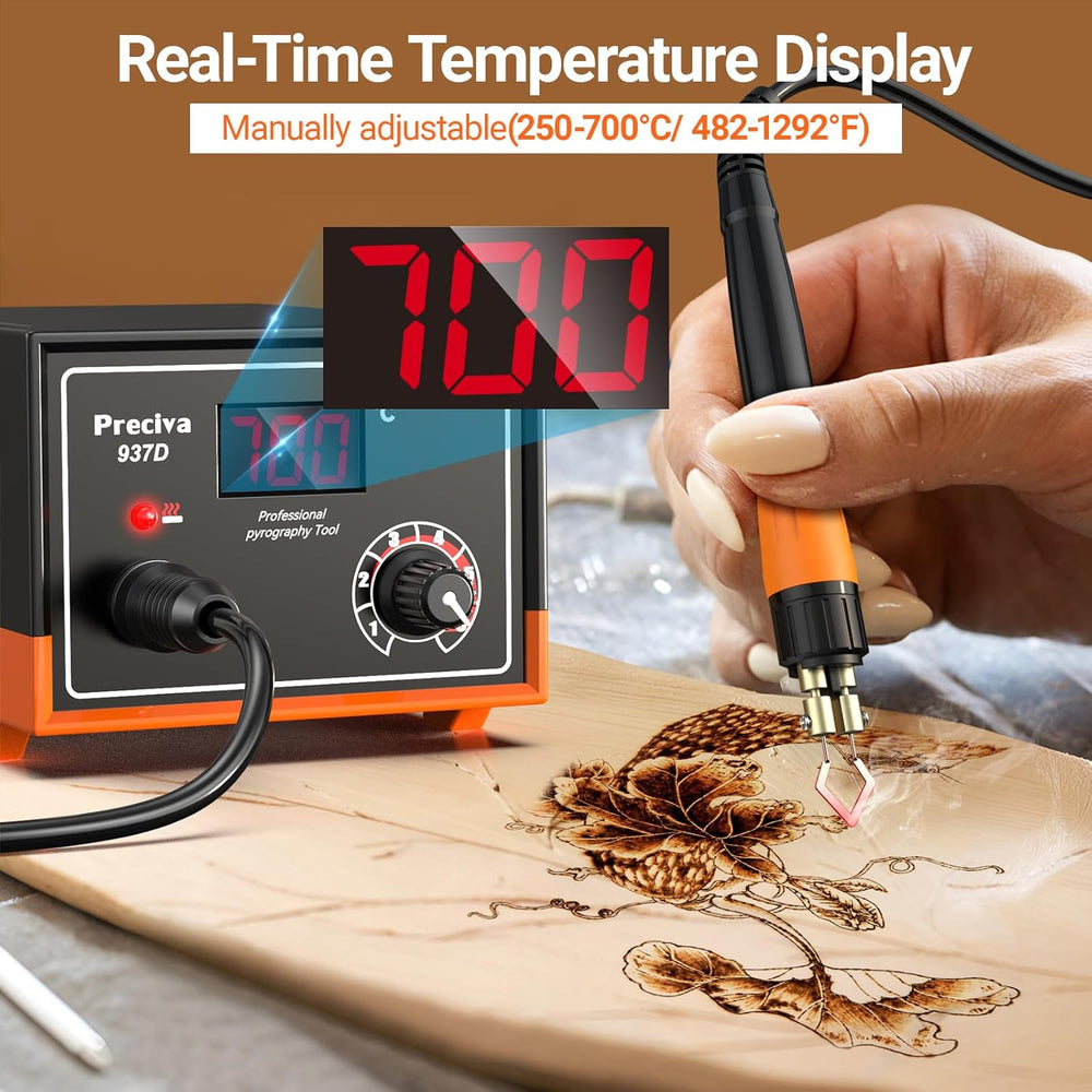 Preciva Brandmalstation,937D Brandmalerei Set Digitalanzeige Pyrographie-Lötstation,Temperaturbereic