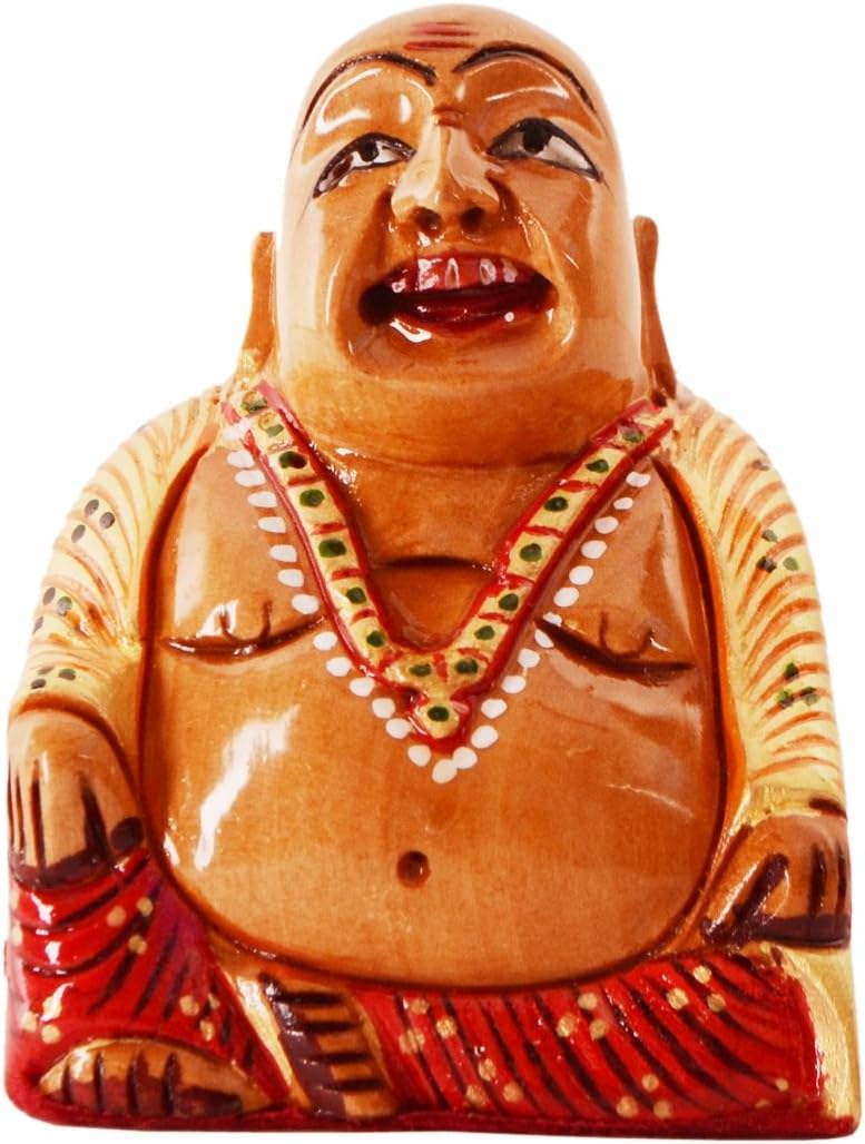 Purpledip Holz Idol Lachender Buddha mit Fine Gold Gemälde: HARBINGER of Wisdom & Reichtum – Home De