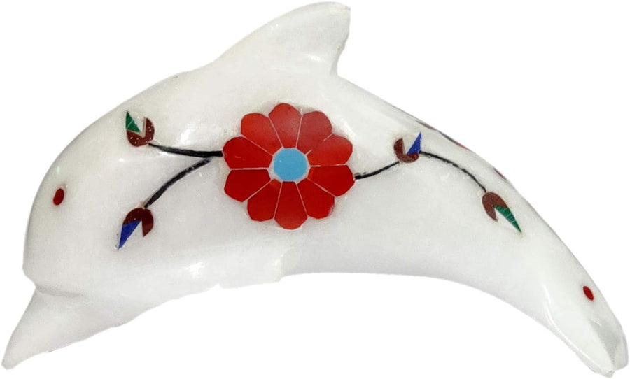 Purpledip Marmor-Statue "Darling Delphin", Edelstein-Inlay, Sammlerstück (12112)