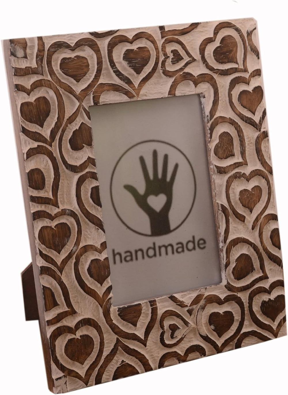 Purpledip Wooden Photo Frame 'Bouquet of Hearts' - Memorable Gift for Loved Ones,White Color (11012)