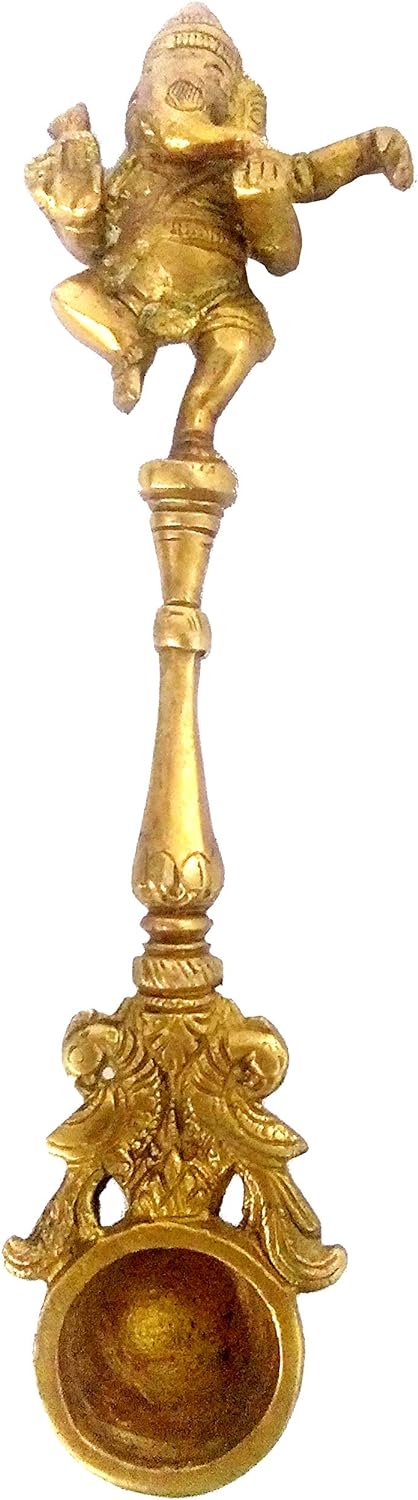 Purpledip Ganesha Aarti Hawan Löffel, Messing, Hindu-Tempel Puja Zubehör (11976)