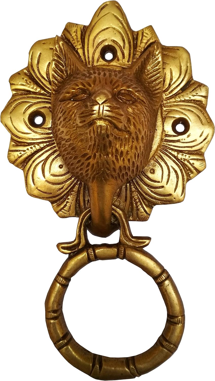 Purpledip Türklopfer, Messing, antikes Katzengesicht, 11596
